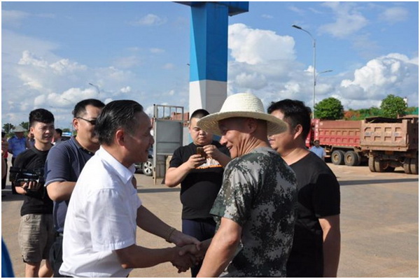 7月3日,湖南萬利隆食品有限公司總經(jīng)理韓廣寧先生在抗洪一線慰問搶險隊員。