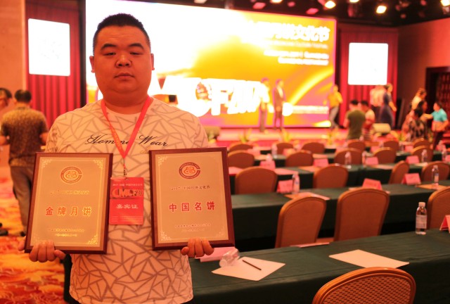 萬(wàn)利隆員工周強(qiáng)代表公司接受2017中國(guó)月餅文化節(jié)“中國(guó)名餅”、“金牌月餅”榮譽(yù)
