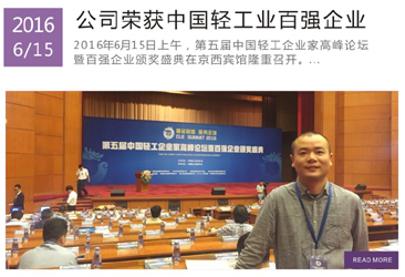 公司榮獲中國(guó)輕工業(yè)百?gòu)?qiáng)企業(yè)